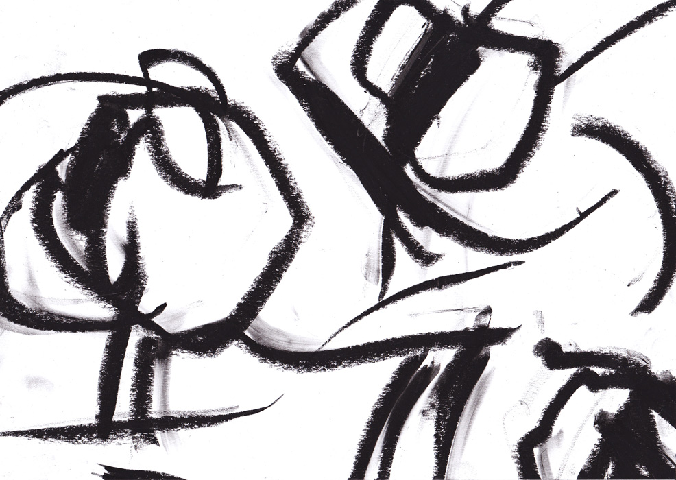 Tekenen is onderzoeken, experimenteren en variƫren. De tekeningen kenmerken zich door spontaniteit, dynamiek, emotionele geladenheid en grote vormrijkdom.